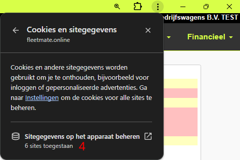 Het kan zijn dat je naar beneden moet scrollen onder 'gegevens van ingesloten sites'