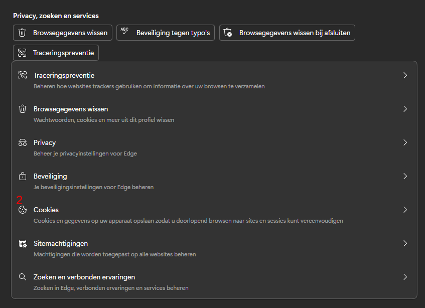 1. In de adresbalk ga naar 'edge://settings/privacy'