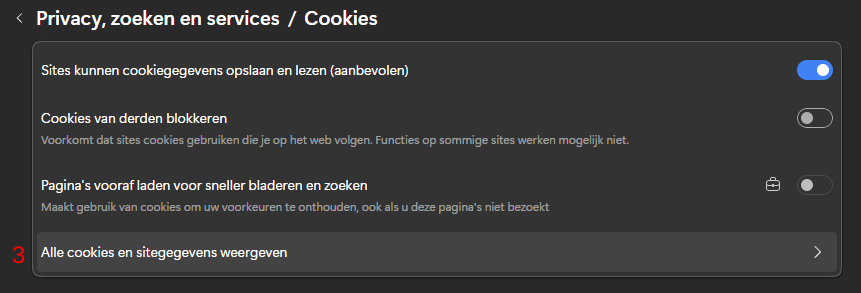 3. Ga naar 'Alle cookies en sitegegevens weergeven'
